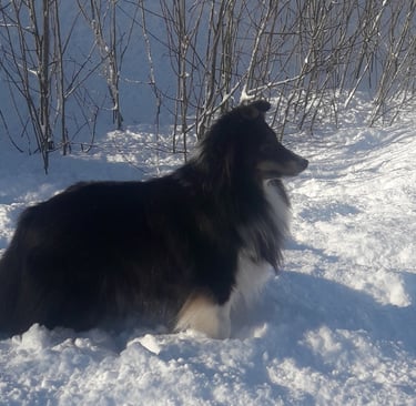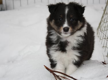 Huubin syntymä oli todellinen yllätys. Huubin emä Kharma oli peräti kaksi kertaa ultrattu tyhjäksi, joten pentuja ei odotettu syntyväksi. Kaksi kertaa, koska omaan käteeni Kharma vaikutti tiineeltä ja se oli laihtunut painon noususta huolimatta. Uskoin kuitenkin jälkimmäisen ultran 6. viikon kohdalla tehnyttä sisätautien erikoiseläinlääkäriä. Kaikessa rauhassa vietettyjen joulun pyhien jälkeen istuin syntymäpäiväni aamuna 28.12.2015 aamiaispöydässä aikeenani lähteä Helsinkiin osteopaatille ja asiakaskäynnille, kun puhelin soi. Kharman emäntä Kiti soitti minulle hätääntyneenä: "Mitä mie teen, tää näyttää siltä, että se synnyttää!" Kharma oli alkanut aamulla läähätellä ja käyttäytyä omituisesti. En tässä vaiheessa uskonut olevan kysymys oikeasta synnytyksestä, vaan ajattelin valeraskaan nartun valesynnyttävän tai olevan muuten sairas. Paikallinen eläinlääkäriasema ei suostunut ottamaan koiraa vastaan sillä heillä ei ollut röntgenlaitetta ja he suosittelivat viemään koiran kasvattajalle näytille. Kiti ajeli meille ja sitten tulikin kiire ja hätä, sillä Kharma todellakin ponnisti kovasti, enkä tuntenut pentua synnytyskanavassa! Parin puhelinsoiton jälkeen meidät otettiin onneksi vastaan Keski-Uudenmaan Eläinlääkäriasemalla, jossa röntgenkuva näytti kohdussa yhden kookkaalta näyttävän erittäin hankalassa asennossa olevan pennun. Eläinlääkäri sanoi, että se ei mitenkään pääsisi syntymään omin avuin. Ystävällinen henkilökunta soitteli asiakkaat läpi ja raivasi keisarinleikkaukselle tilan täpötäyteen maanantaipäivään ja tässä vaiheessa jo vetelä ja rohiseva, mutta virottuaan kuitenkin erittäin ponteva narttupentu saatiin elävänä maailmaan! Loppu sujuikin tämän pienen joulun ajan ihmeen elämässä onneksi melko hyvin. Huub sai sijoituskodin äitinsä luota Kellokoskelta, missä on kasvanut yhteensä kolme polvea Uneksijan shelttejä!