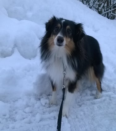 Kharma kävi kanssani MH-luonnekuvauksessa, kun emäntä ei saanut testipäivälle vapaata töistä. Testissä näkyi jonkin verran enemmän epävarmuutta, kun emäntä ei ollut mukana. Kharma ei ollut vielä tuolloin ollut meillä hoidossakaan.