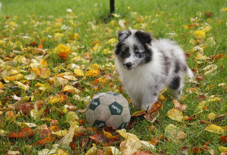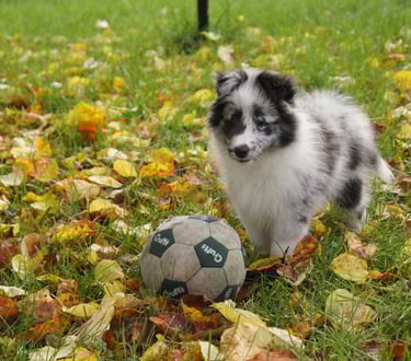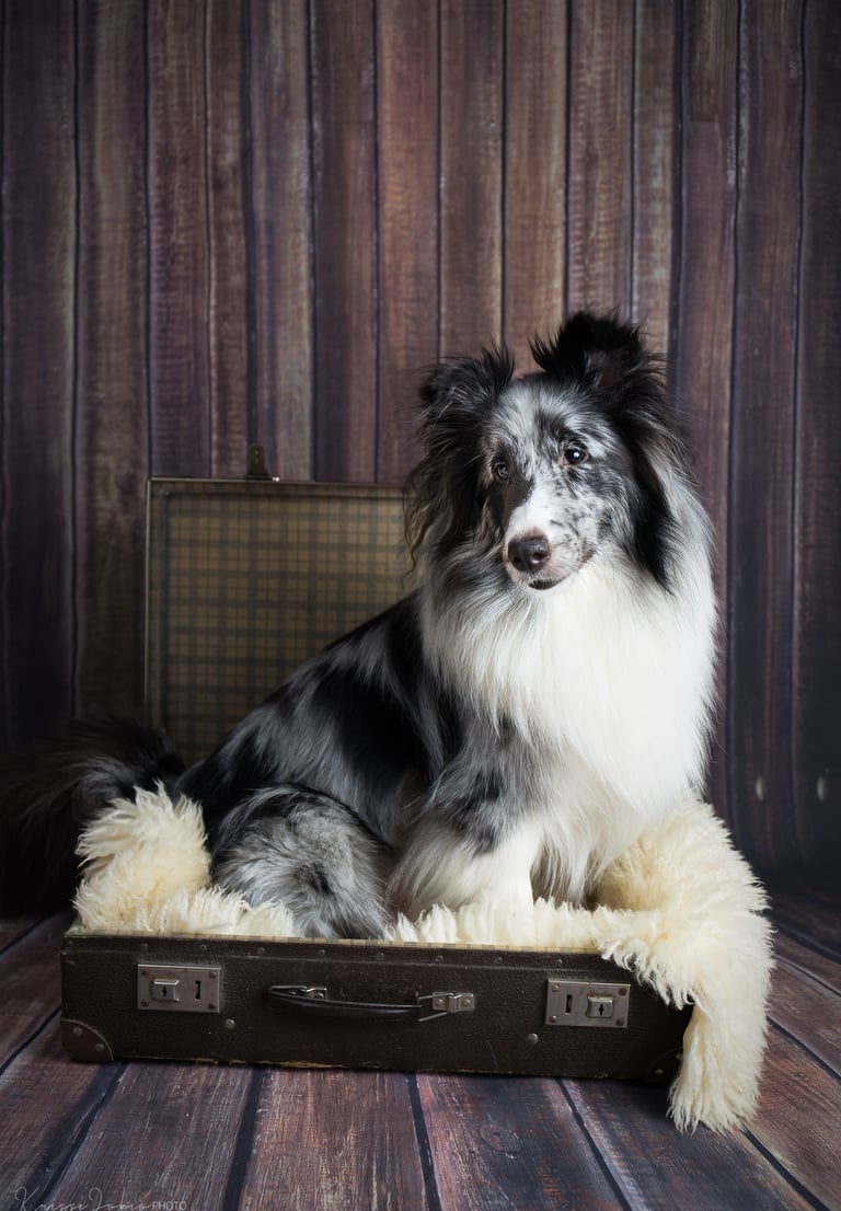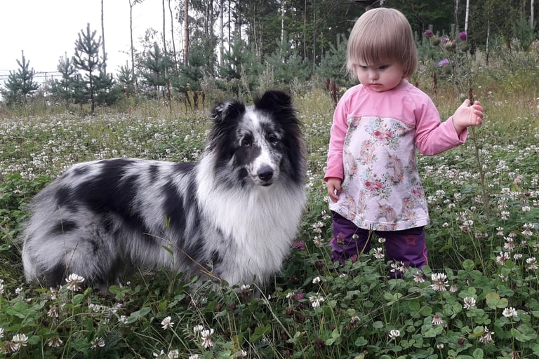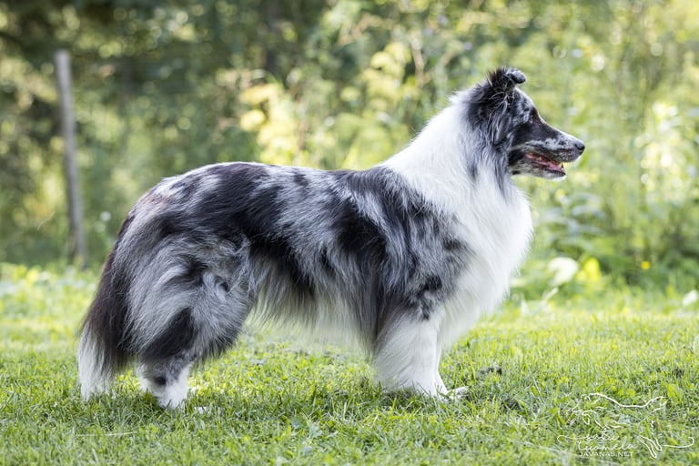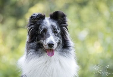 Viuhti on reipas bi-merle narttu. Sen omistaa Valkeakoskelainen pitkäaikainen ystäväni Marita Vainio, jonka kanssa olen tehnyt jo pitkään yhteistyötä. Minä etsin sopivaa narttupentua aloittaakseni uuden linjan, kun vanhasta loppuivat jalostukseen sopivat nartut ja Marita etsi itselleen uutta pentua ja oli kiinnostunut jälleen pennutusyhteistyöstä kanssani. Pitkän etsinnän jälkeen saimme hankkia Varjoklaanin kennelistä tämän hienoluonteisen täysjenkkipennun. Viuhdin kaverina on tammikuussa -21 syntynyt tytär Tuisku (Uneksijan Tanssiva Lumihiutale), joka oli sijoituksessa Maritalla ja on Uneksijan Toivopentueen emä.